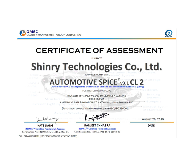 通过ASPICE(汽车界软件开发历程评估标准)能力2级认证 (2019年)