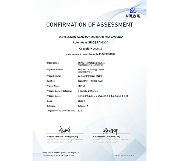 通过ASPICE 3级认证(2023年)