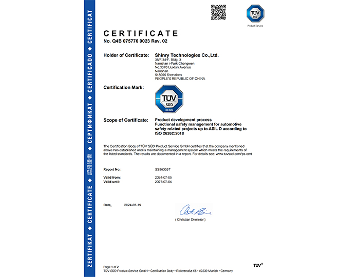 ISO26262:2018 ASIL-D功效清静管理系统认证 2021(2021年)