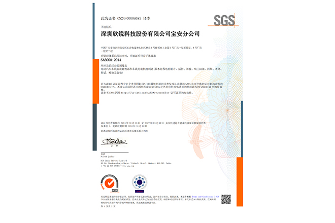 通过SA 8000:2014 社会责任国际标准系统认证